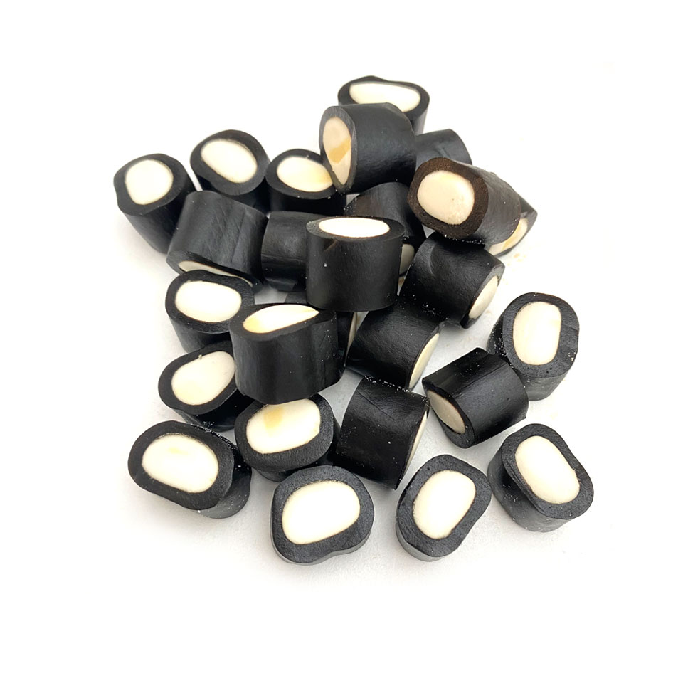 Sugar, molasses, wheat flour, glucose syrup, vegetable fat (shea, coconut), gelatin, liquorice extract, stabilizer (E422), salt, flavour, acidity regulator (E330), colour (E153), vegetable oil (canola, sunflower), glazing agents (E901, E903)